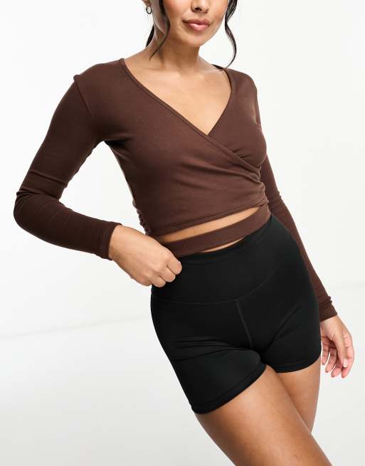 Daisy Street - Active Distorted Geo - Cropped brun top med bindetalje