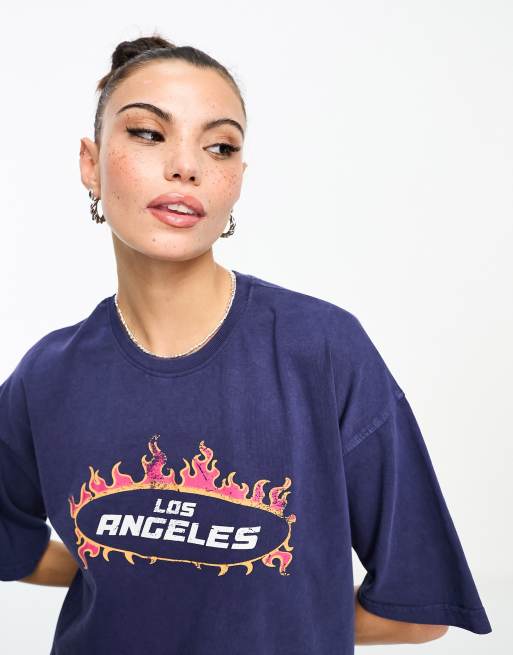 Daisy Street - Afslappet T-shirt i marineblå med Los Angeles-grafik