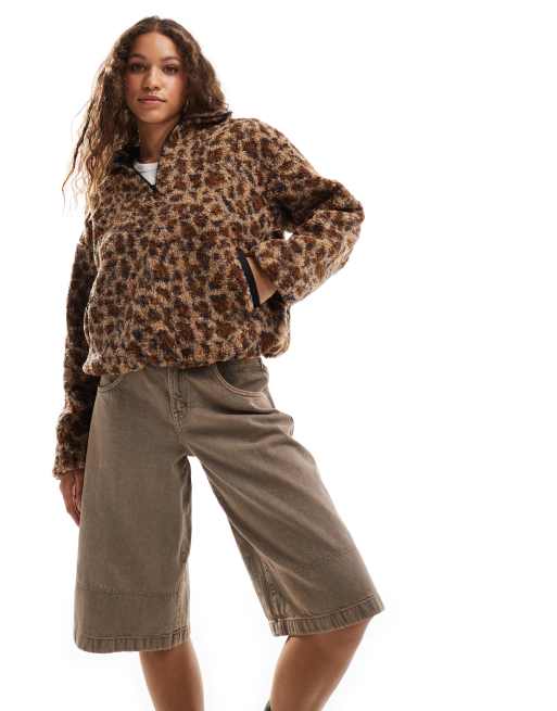 Daisy Street - Cropped jakke i imiteret lammeskind med leopardmønster