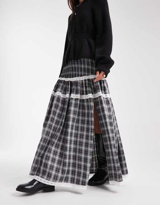 Daisy Street - Grå maxinederdel med sænket talje, rynker og tern