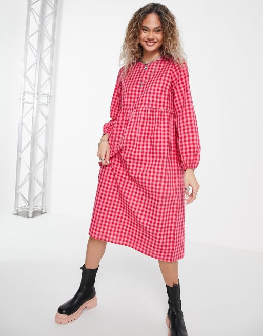 Daisy Street - Langærmet smock-midikjole med tern
