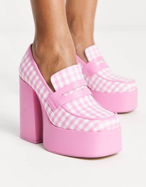 Daisy Street - Lyserøde plateau-loafers med gingham-tern