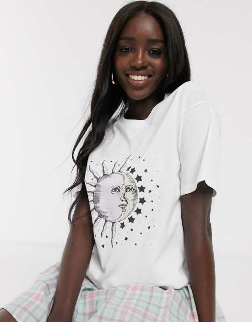 Daisy Street - oversized t-shirt med sol- og måneprint