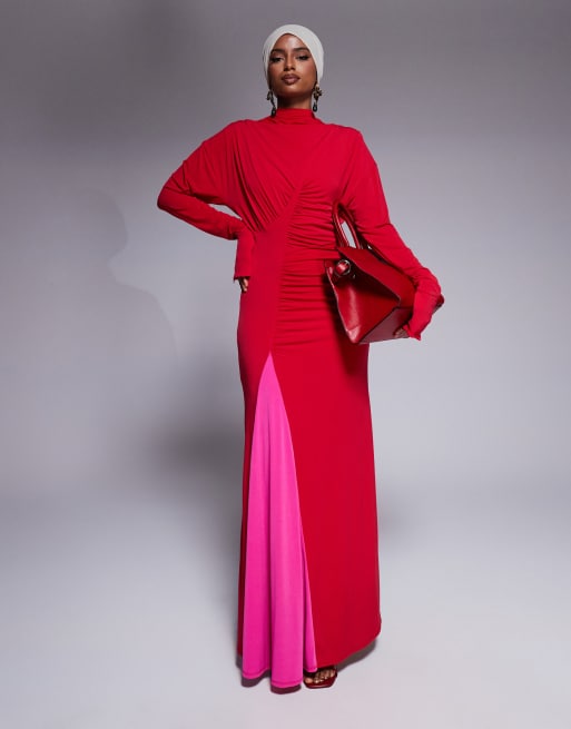 Daska - Rød og lyserød og højhalset maxikjole med print - Kun hos ASOS
