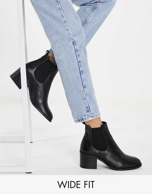 DEPP Wide Fit - Sorte Chelsea-støvler med blokhæl i læder