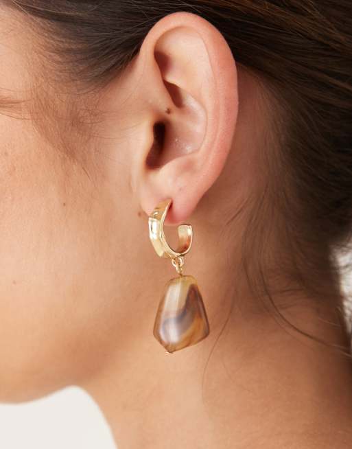 DesignB London - Guldfarvede hoop-øreringe med huggie-design og chunky vedhæng med i imiteret rav