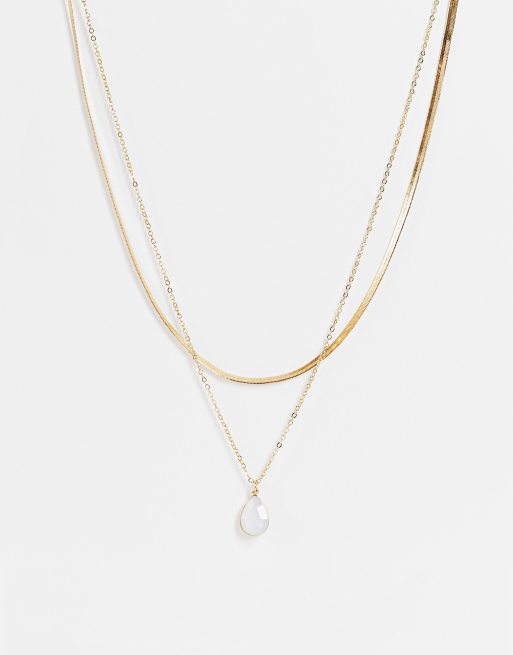 DesignB London - Guldfarvet halskæde med flere rækker og halvædelsten