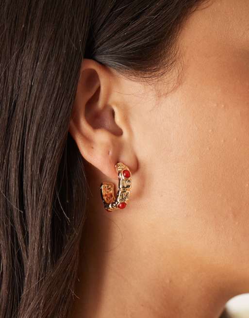 DesignB London - Hamrede guldfarvede hoop-øreringe med røde sten