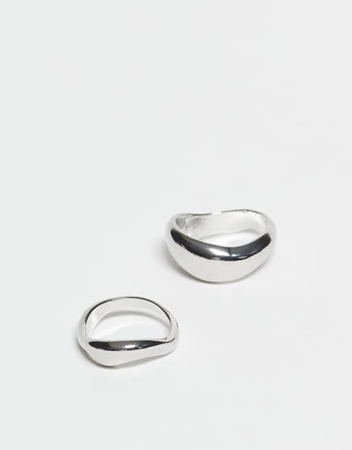 DesignB London - Pakke med 2 sølvfarvede ringe i smeltet design