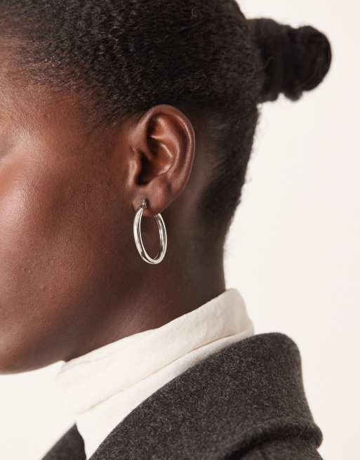 DesignB London - Sølvfarvede 33 mm hoop-øreringe