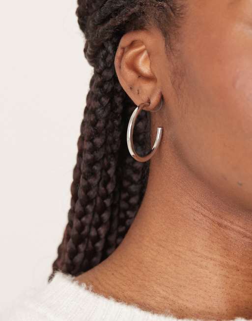 DesignB London - Sølvfarvede 35-millimeters tubeformede hoop-øreringe