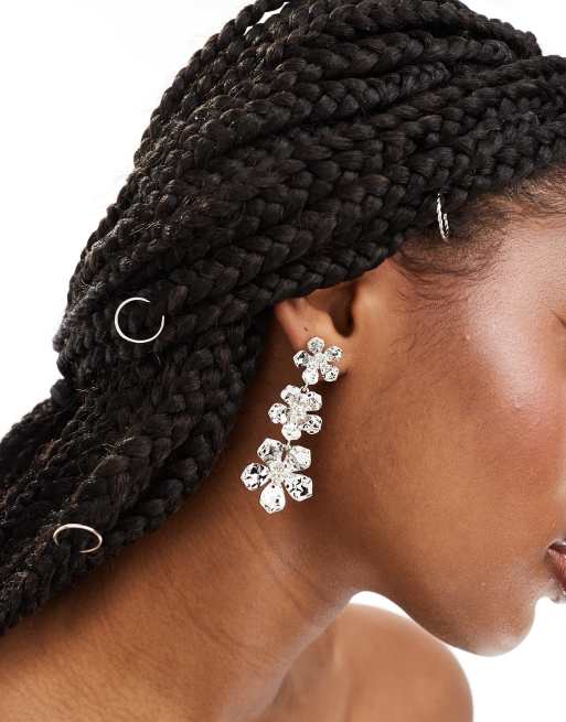 DesignB London - Sølvfarvede statement-øreringe med hamret blomsterdesign