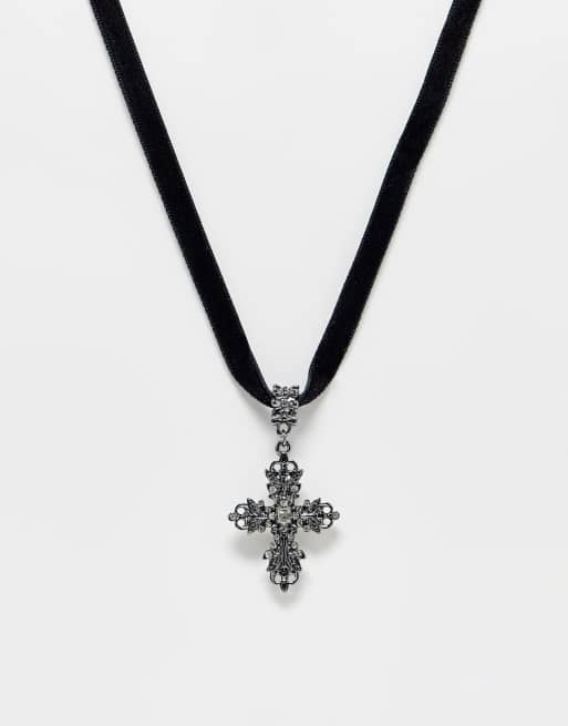 DesignB London - Sølvfarvet grunge-choker med korsdetalje