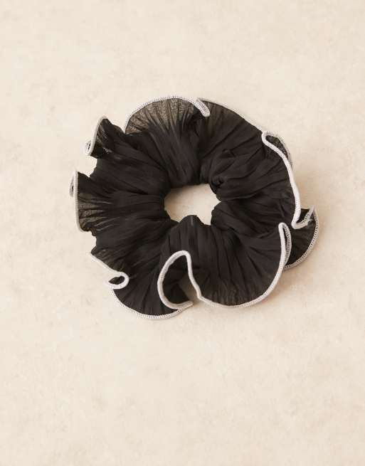 DesignB London - Sort og plisseret scrunchie med kantbånd i kontrast