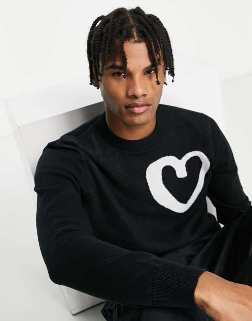 Devil's Advocate - Sort strikket trøje med rund hals og hjerteprint