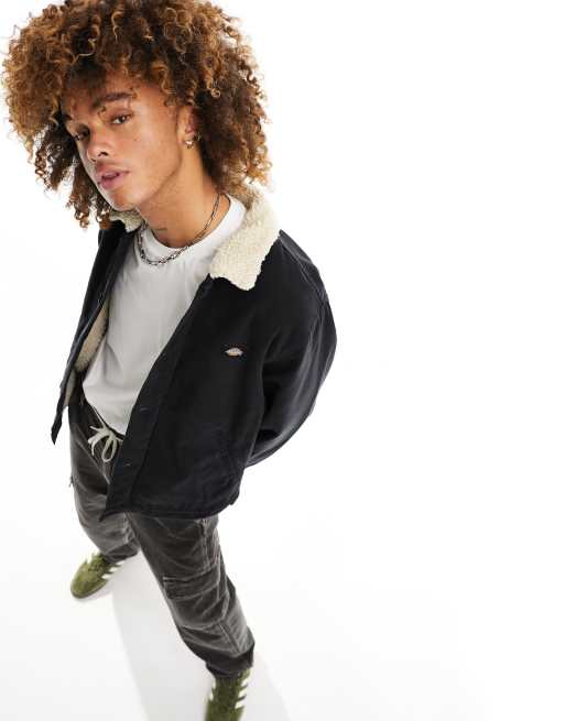 Dickies - Duck - Sort deck-jakke i kanvas med krave i imiteret lammeskind