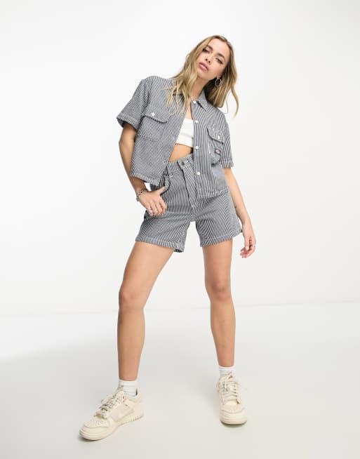 Dickies - Kortærmet arbejderskjorte med blå hickory-striber
