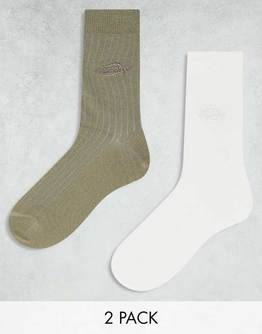 Dickies - Pakke med 2 par strikkede sportssokker med tone-i-tone-logo i khaki og offwhite