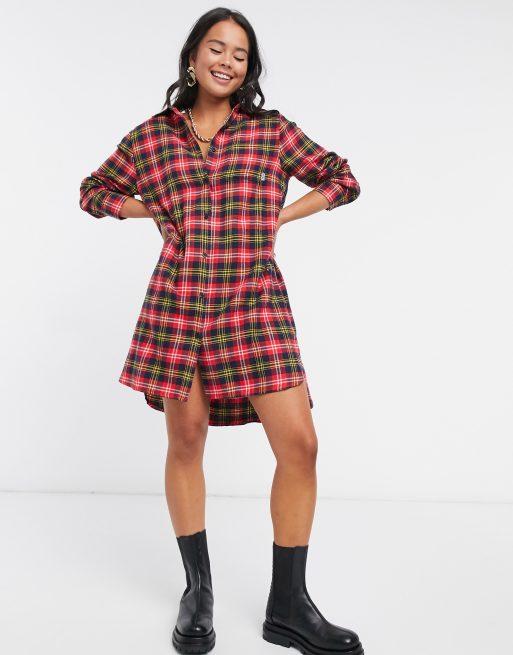 DKNY - Lang rødternet flannelskjorte med lange ærmer