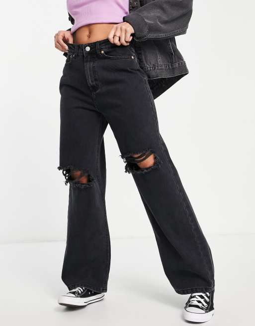 DTT - Dad-jeans med vide ben og flænser på knæene i vasket sort