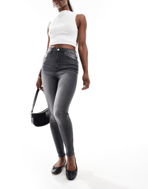 DTT - Ellie - Højtaljede skinny-jeans i vasket sort