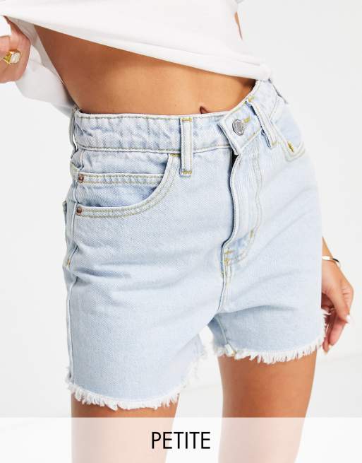 DTT Petite - Lyseblå longline-denimshorts med flossede kanter