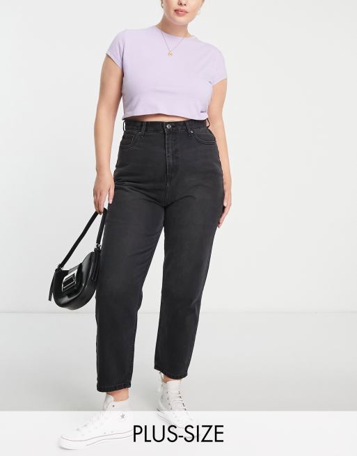 DTT Plus - Emma - Super-højtaljede mom-jeans i forvasket sort