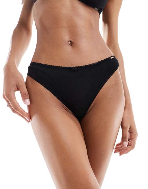 Dorina - Sort G-streng med rosenknop i pointelle-stof