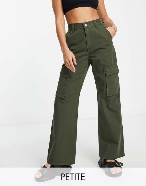 Dr Denim Petite - Echo Sky High - Kakigrønne cargobukser med vide ben