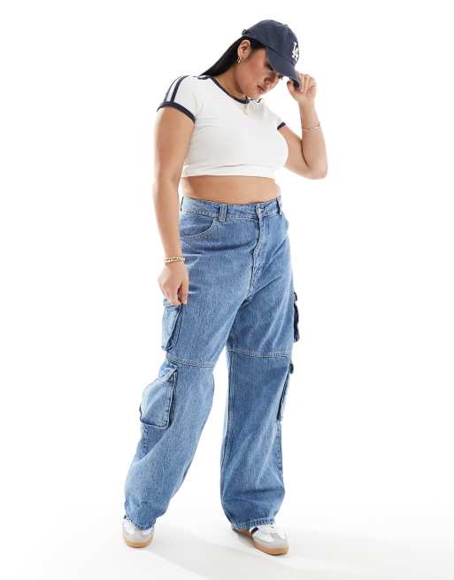 Dr. Denim Plus - Donna Multi Modular - Højtaljede cargojeans med lige ben i retro-vask i afslappet pasform