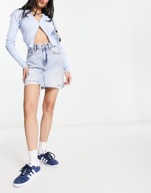 Dr Denim - Echo - Mininederdel med flosset kant i denim med lyseblå vask