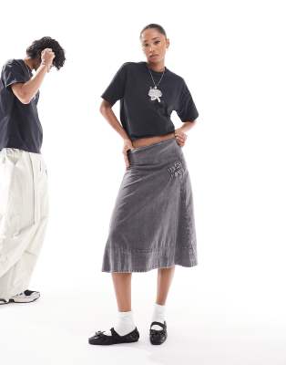 Dr Denim Unisex - Trooper - Off-black T-shirt i afslappet pasform med 'World Traveller'-grafikprint foran