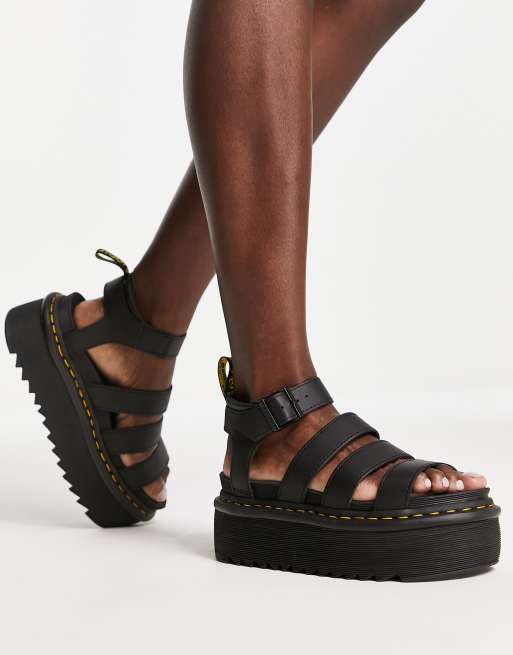 Dr Martens - Blaire Quad - Sorte flatform-sandaler