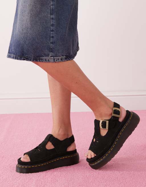 Dr. Martens - Dunnet - Sorte sandaler med blomsterdesign