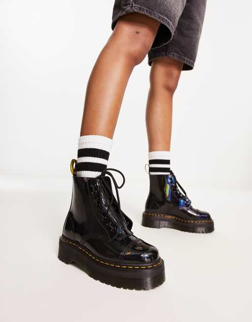 Dr Martens - Sinclair - Sorte flatform-støvler med regnbuedetaljer