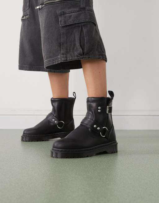 Dr. Martens - Sorte ankelstøvler med seletøjsdetaljer