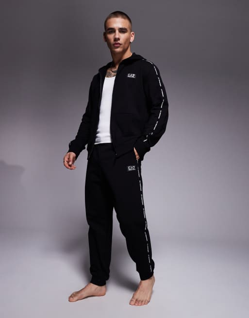 Armani - EA7 - Sorte joggingbukser med tætsiddende buksekanter og logobåndsdetaljer - Del af sæt