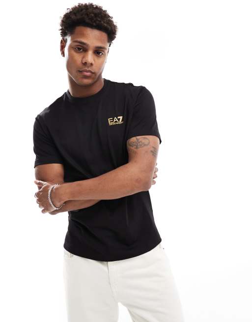 EA7 - Sort T-shirt med logo på brystet i guldfarve