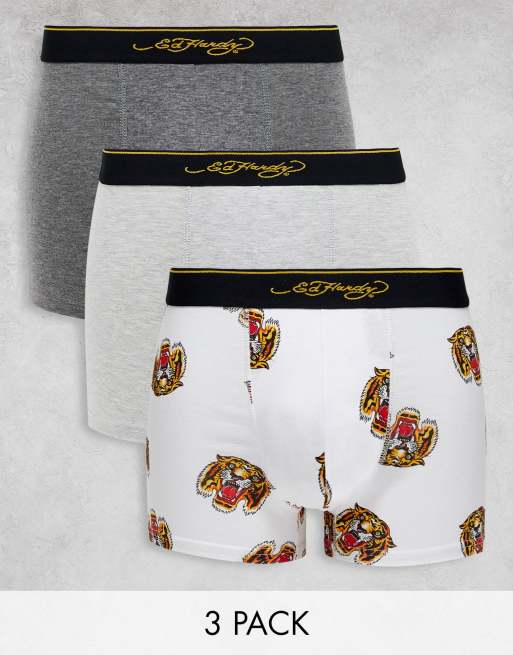 Ed Hardy - Pakke med 3 par boksershorts med tattoo-print og sort taljebånd