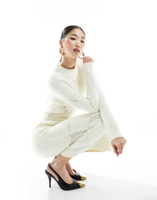 Edited - Cremehvid og strikket midaxikjole med tekstur