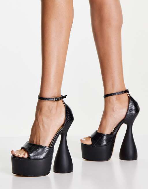 Ego - Radiate - Plateausandaler med hæl i sort krokodillemønster