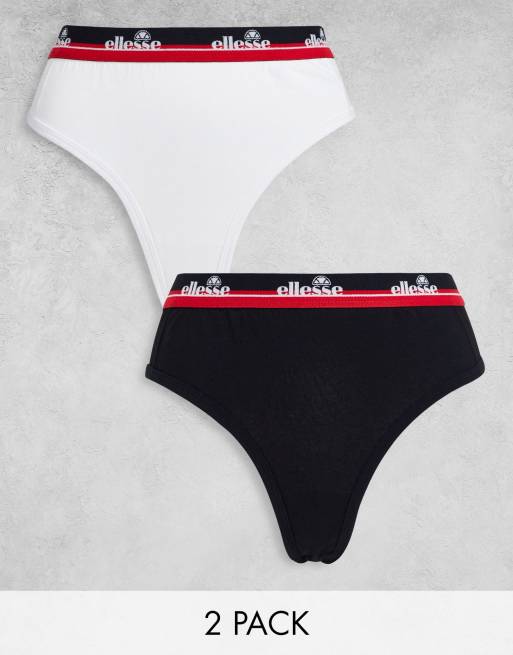 Ellesse - Pakke med 2 par G-strenge med logo og mesh-paneler samt kontrastkant i sort og hvid