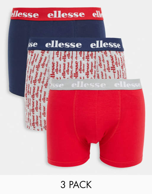 ellesse - Pakke med 3 par boksershorts i grå med print og ensfarvet rød/marineblå