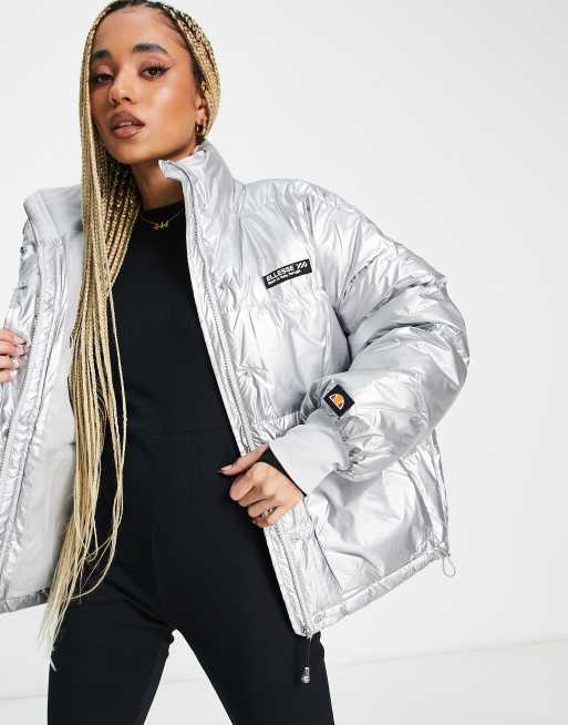 ellesse - Sølvfarvet metallisk dynejakke med logo