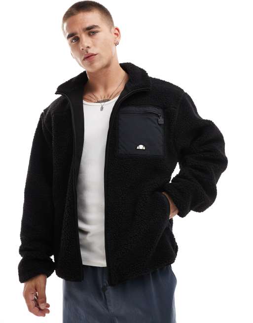 ellesse - Viterbo - Sort jakke med lynlås i imiteret lammeskind