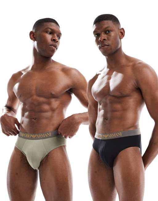 Emporio Armani Bodywear - Pakke med 2 par bløde underbukser i bambus i sort og beige med logo