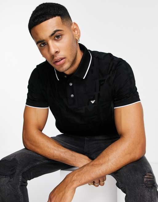 Emporio Armani - Poloskjorte med tekstprint i sort jacquard