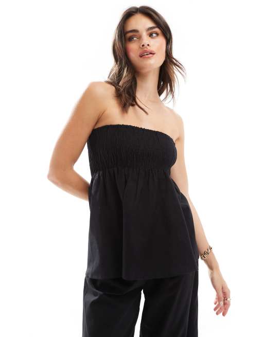 Esmee - Rynket bandeau-strandtop med voluminøst design i sort - Del af sæt