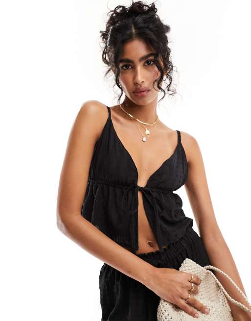 Esmée - Sort strandtop med tekstur og bindebånd foran - Del af sæt - Kun hos ASOS