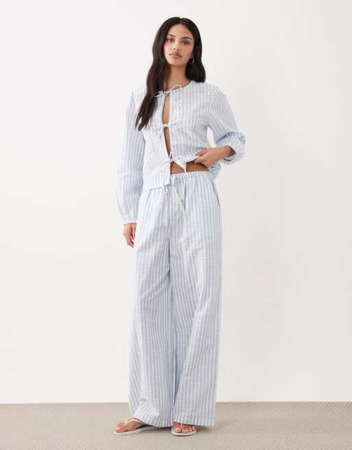 Esmée - Strandbukser med bindebånd foran og blå og hvide striber - Del af sæt